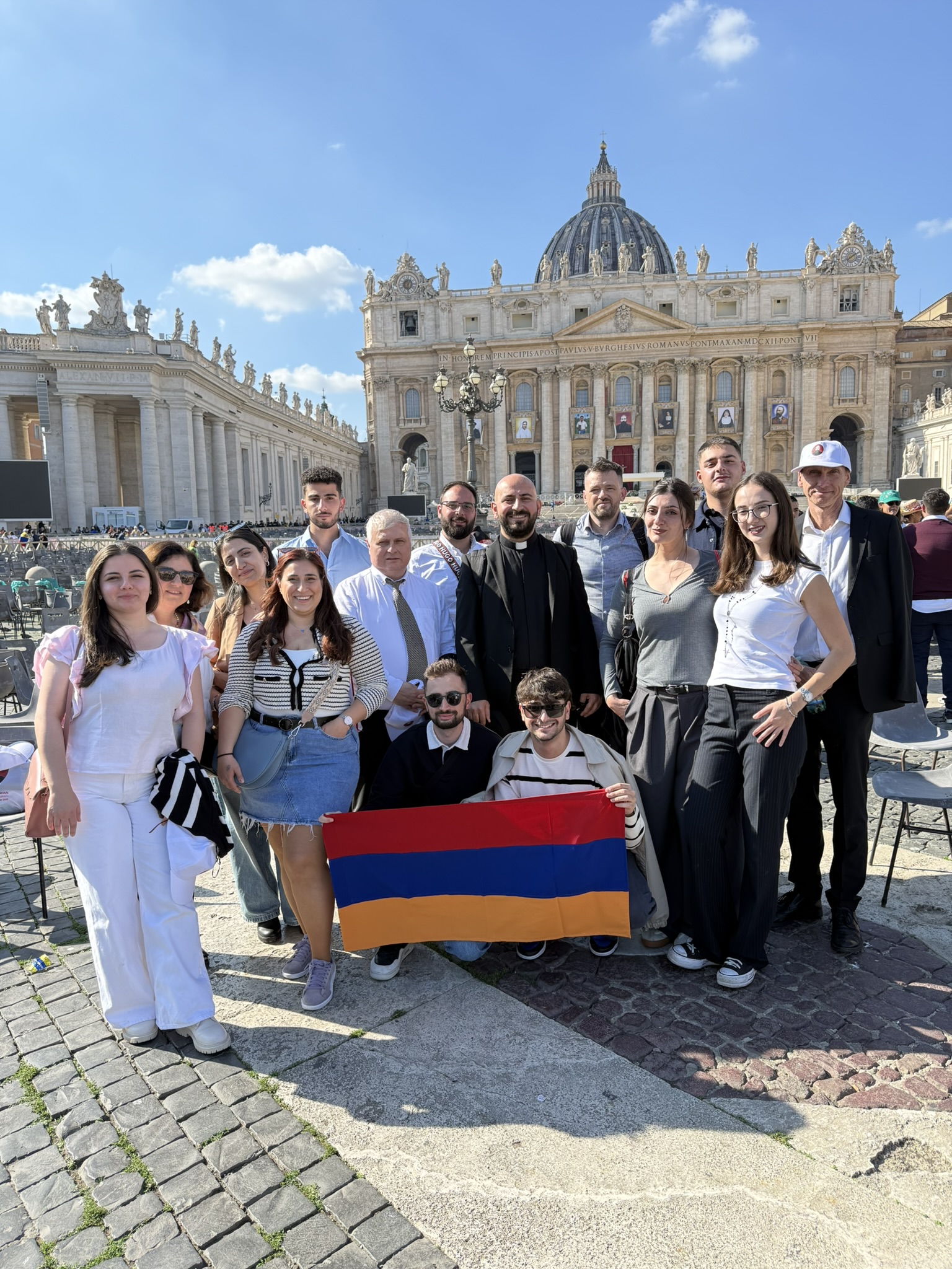 A delegation of Armenian students and professors from Pázmány Péter Catholic University, led by Dr. Sándor Őze, Head of the Faculty, and Dr. Bálint Kovács, Head of the Department, together with Dr. Karen Jallatyan and Prof. András Bácskay, and Mrs. Sossi Soussani and Father Bedros Marashlian, participated in the canonization of Saint Ignatius Maloyan, held in Vatican City, Rome, from October 19 to October 21.