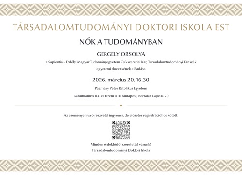 2026. március 20. 16:30. TÁDI-est: Dr. Gergely Orsolya előadása Regisztráció a QR kód segítségével: