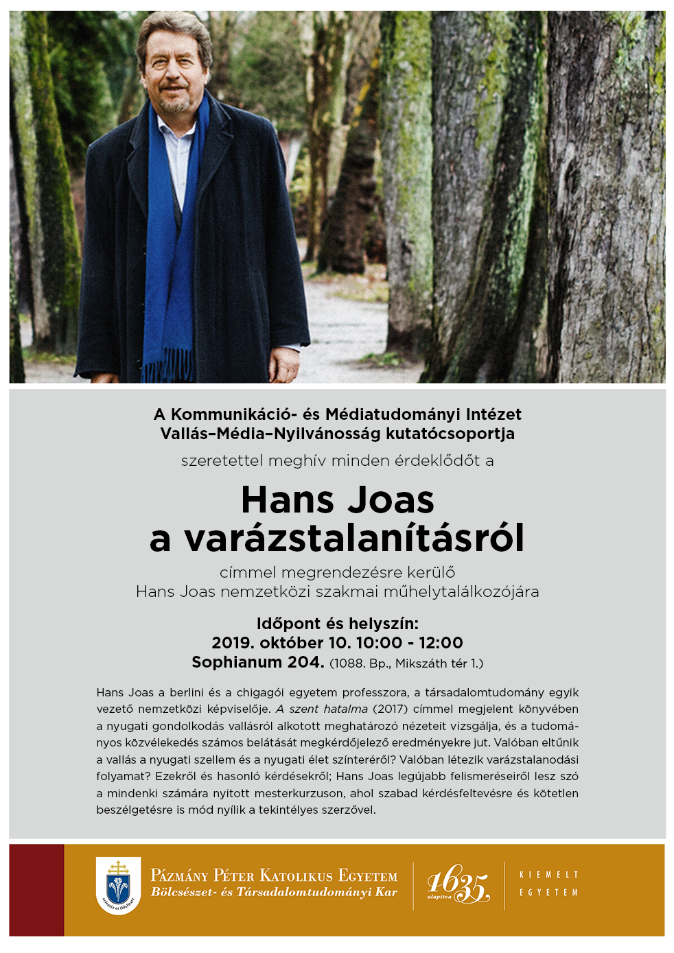 Hans Joas, a berlini és a chicagói egyetem professzorának nemzetközi szakmai műhelytalálkozója