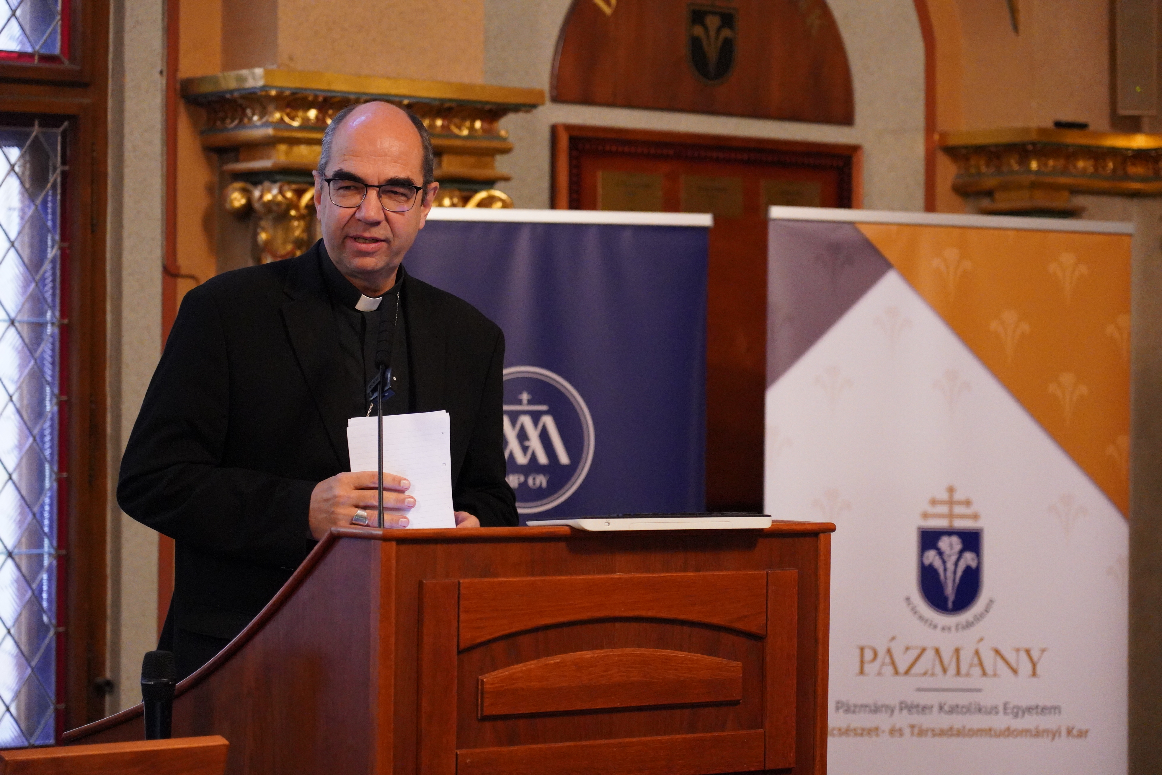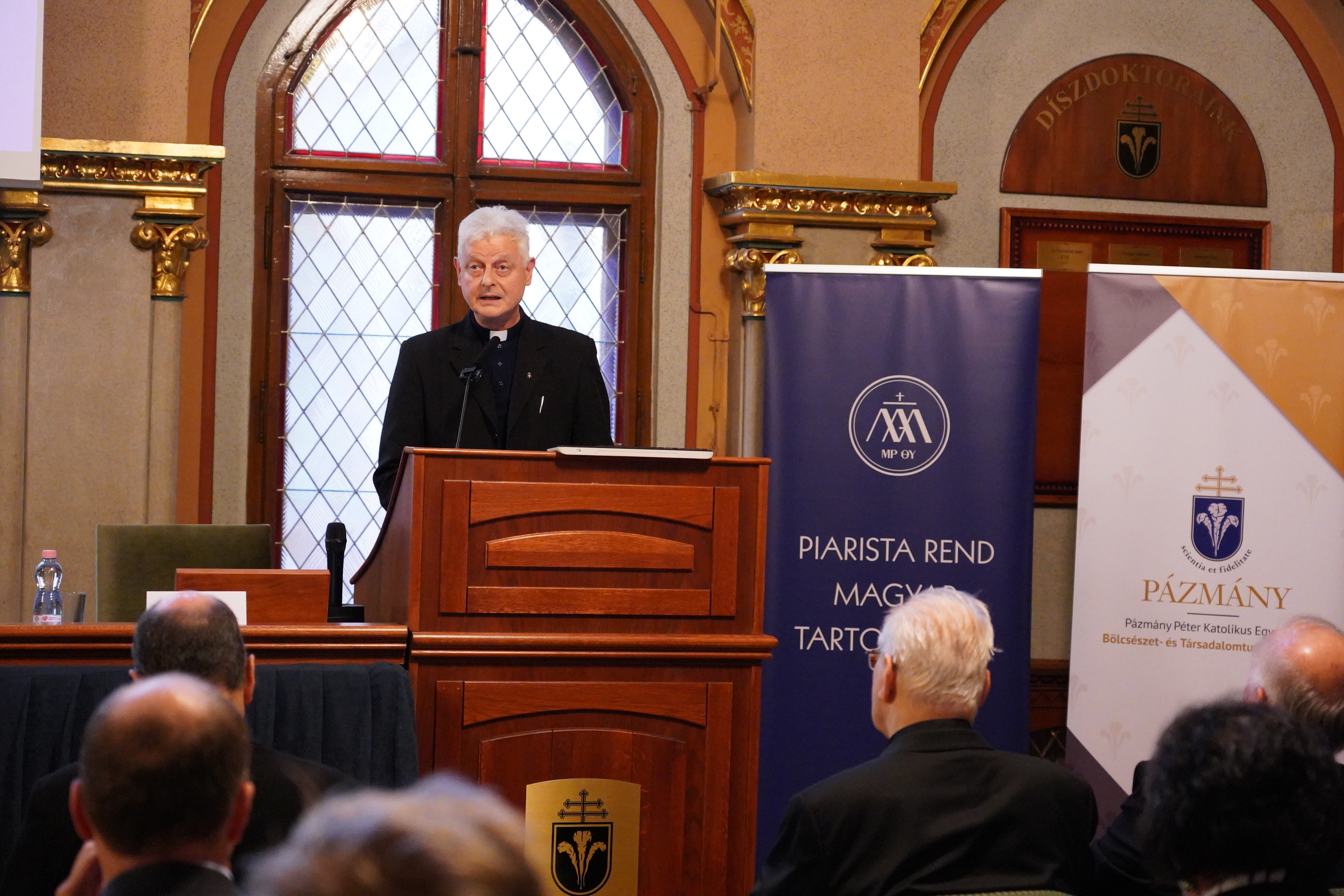 Ezt követően P. Carles Gil i Saguer, a Piarista Rend generálisa megtartotta kiemelt plenáris előadását A katolikus oktatás szükségessége a mai világban címmel. Saguer atya hangsúlyozta: a katolikus nevelés ma is az „emberibb jövő” műhelye, amely a hitből fakadó bölcsességgel és párbeszéddel válaszol az információk korának kihívásaira.