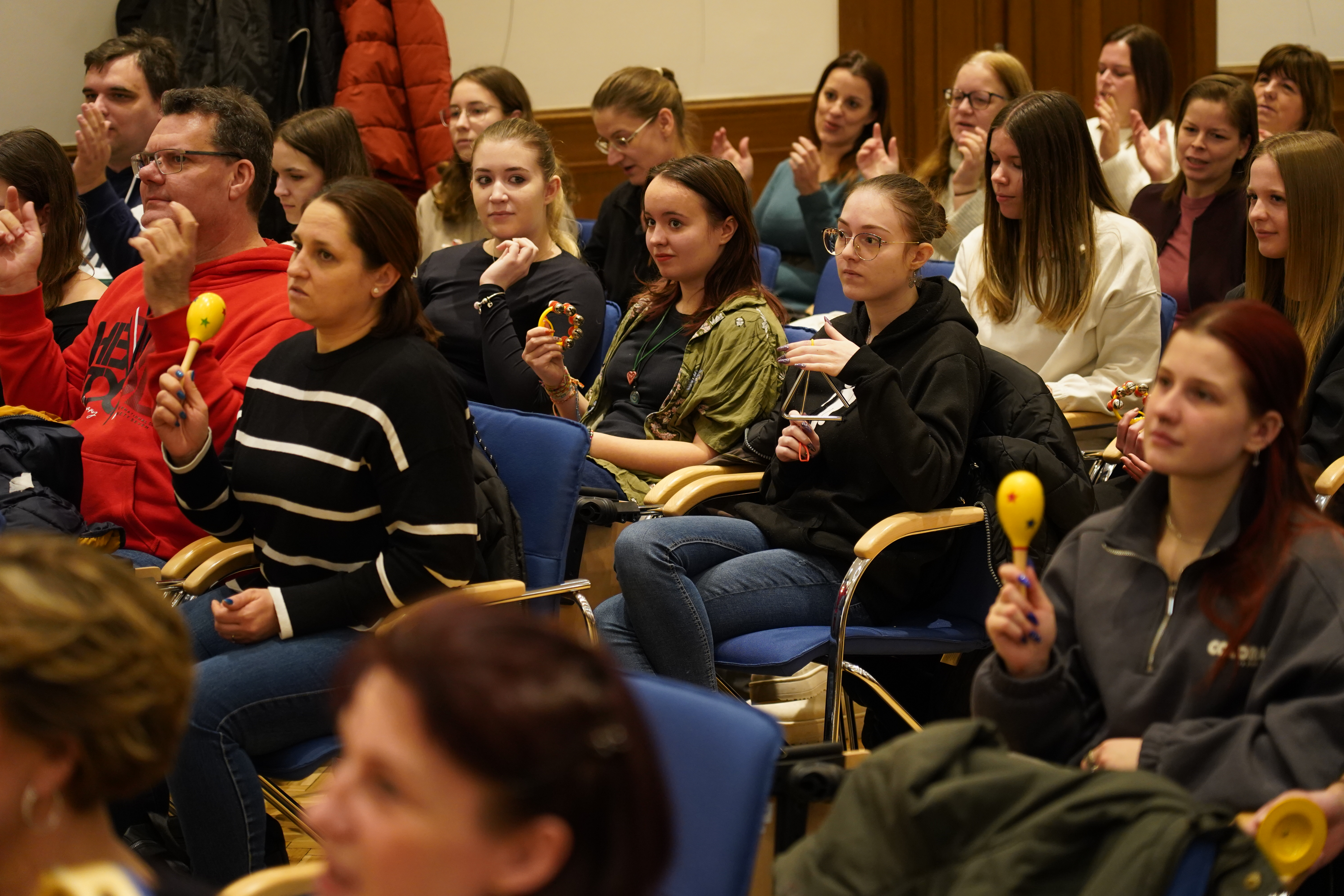 A 10.00 és 11.00 óra között zajló mintaelőadások betekintést nyújtottak a képzés különböző területeibe. Ratimovoszky Kornélia Akarsz róla beszélni? című pszichológiai előadásán a konfliktuskezelés témáját járta körül, majd Dr. Juhász Márta Ritmusra fel! című előadásán ritmusos játékokkal mozgatta meg a résztvevőket. Végül Dr. Miklós Ágnes Kata iránymutatásával újrahasznosított alapanyagokból készítettek cicát az érdeklődők.