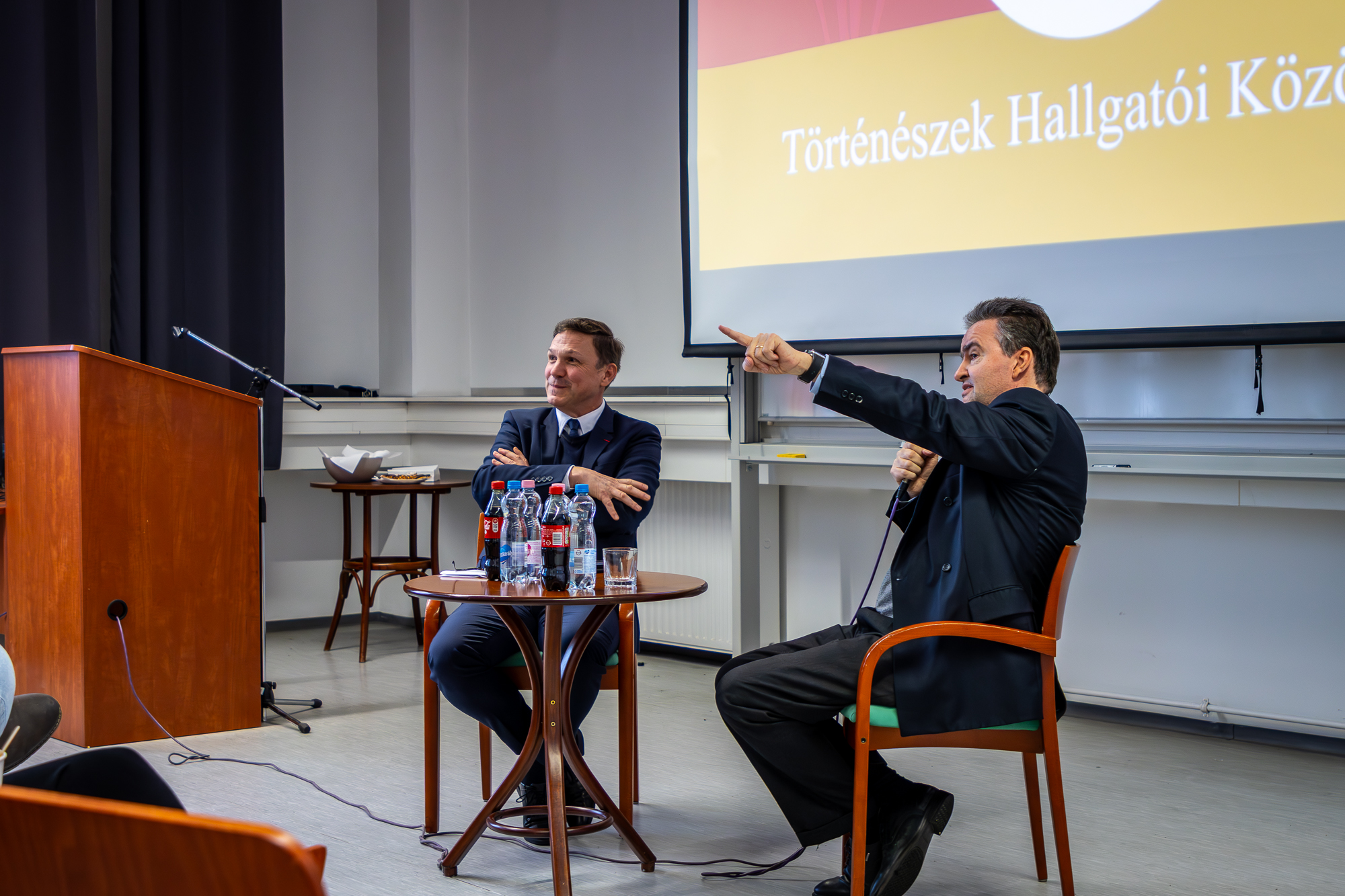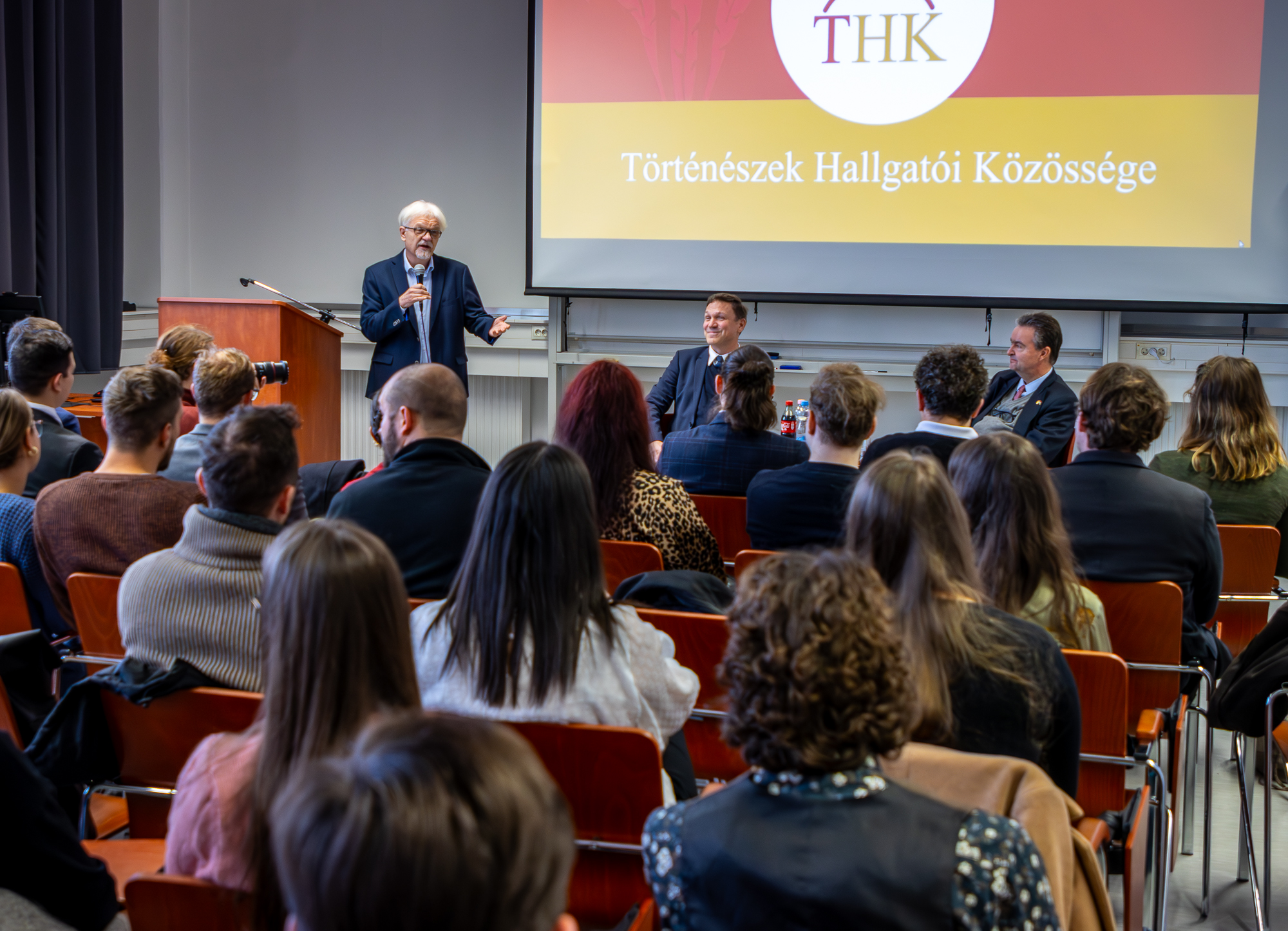 Kőszeghy Miklós Dékánhelyettes Úr köszöntője után Fejérdy Gergely, Karunk oktatójának moderálásával a Nagykövet Úr beszélt különböző témákról, mint például családja alapelveiről, a katolikus hit fontosságáról, valamint személyes tapasztalatairól a diplomáciában. Szó volt még szüleiről, különös tekintettel édesapjáról, Habsburg Ottóról, aki mintát adott családjának a Habsburgok 21. századi felelősségvállalásáról.