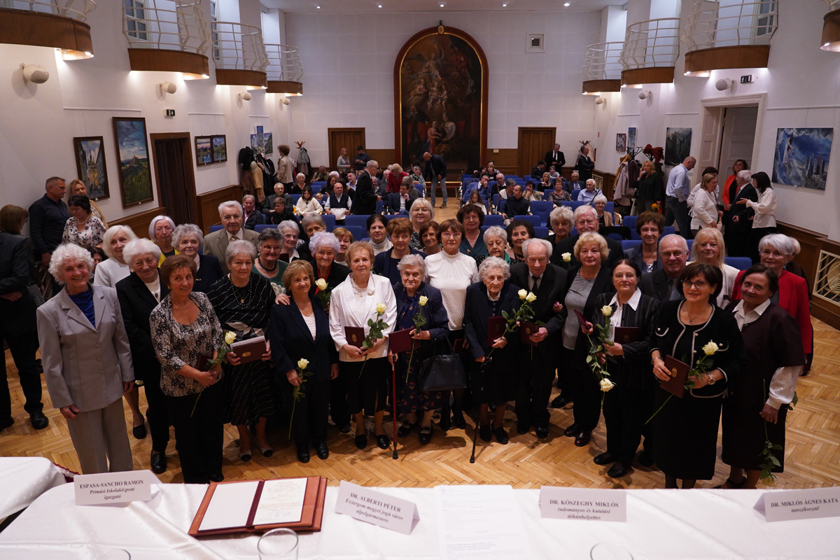 Ezt követően került sor a díszdiplomák átadására. Dr. Kőszeghy Miklós arany-, gyémánt-, vas-, rubin- és gránitdiplomákat adott át azoknak a pedagógusoknak, akik fél évszázaddal vagy annál régebben szerezték meg diplomájukat, és pályafutásuk során több évtizeden át, példamutatóan szolgálták a közösséget.