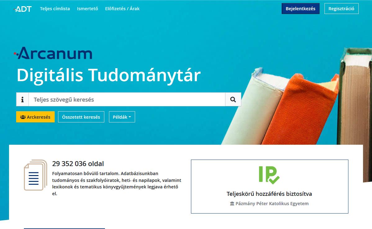 Örömmel értesítjük egyetemünk hallgatóit és oktatóit, hogy újra elérhető az Arcanum Digitális Tudománytár.