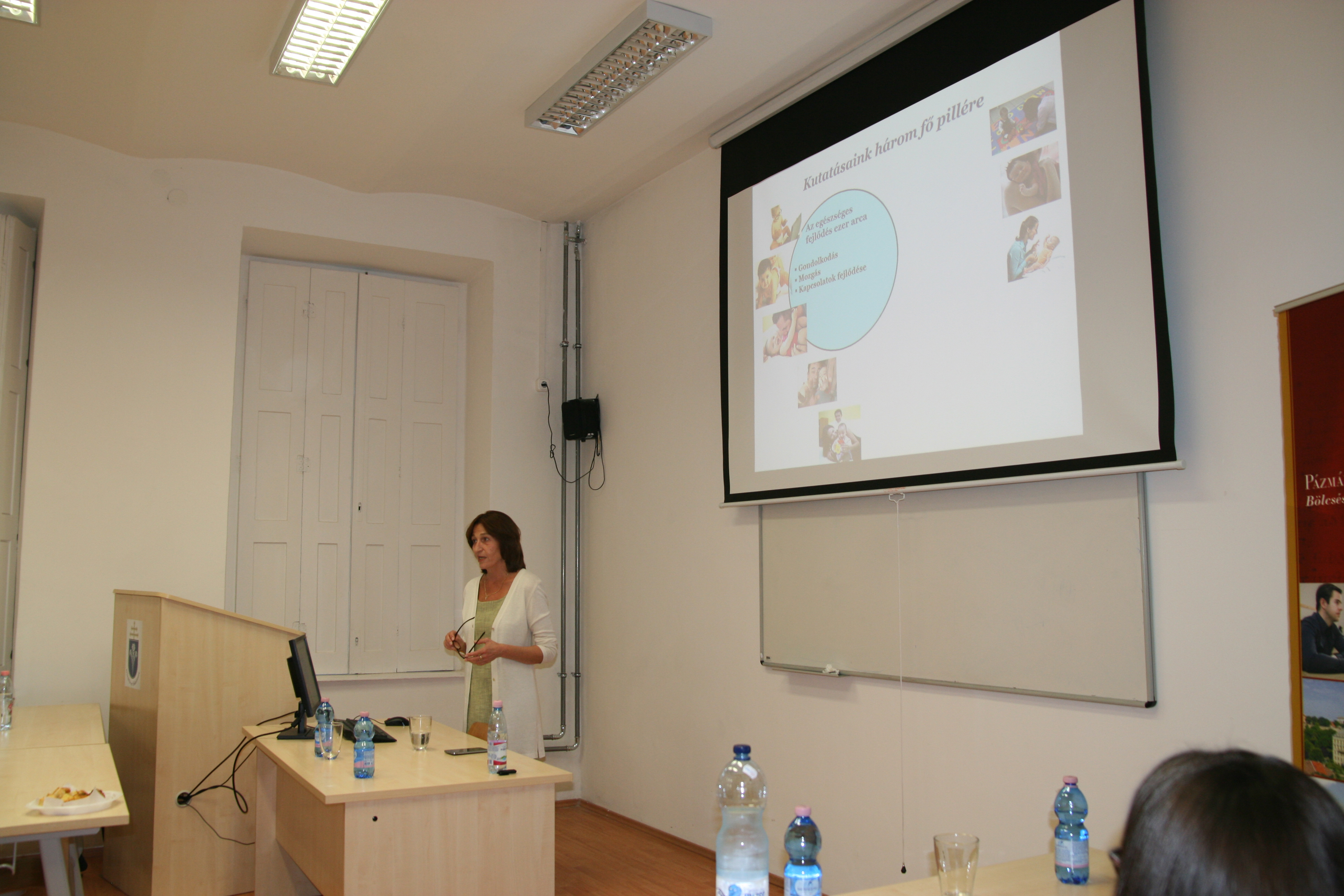 Bemutatkozott továbbá a Pázmány Baba-kutatási laborja A csecsemőkor ezerarcú világa című előadással, melyben Egyetemünk három női kutatója is megosztotta tapasztalatait.