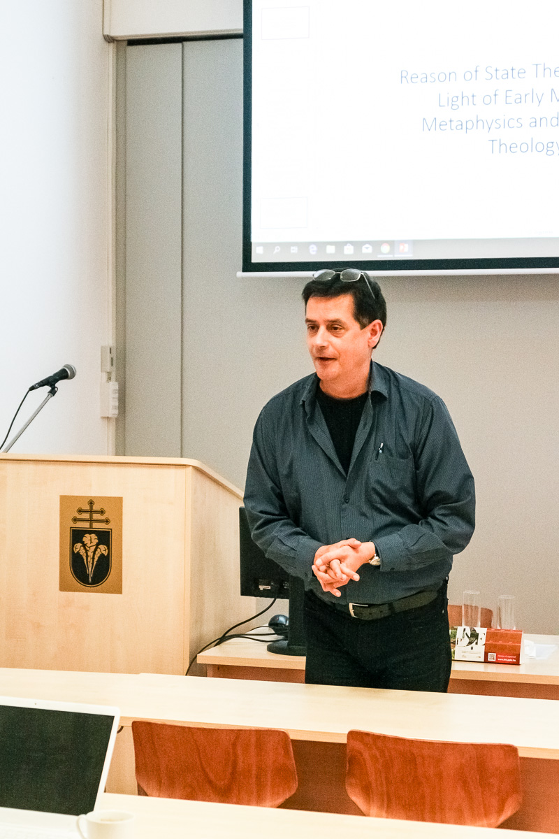 Napjaink szekularizált világában a politika nem csak úgy viselkedik, mint valami posztmodern vallás, de esetenként a vallást is helyettesíti a kortárs gondolkodásban. A workshop időben és tematikában a teológiai legitimációjú politika elméleti dilemmáitól (Smrcz Ádámnak és Dr. Nyirkos Tamásnak köszönhetően) a koraújkori és modern kori kérdéseken át (Thomas Müntzer forradalom-teológiáját Dr. Matthias Riedl, míg Carl Schmitt Juan Donoso Cortés-értelmezését Dr. Botos Máté mutatta be) napjaink problémáinak bemutatásáig terjedt (Dr. Mikka Luoma-aho a populizmusról, míg Dr. Nuno Morgado a globális kormányzat problémáiról beszélt). A résztvevők által is igen sikeres szakmai találkozó egy hosszabb távú együttműködés részleteit is magában rejti.