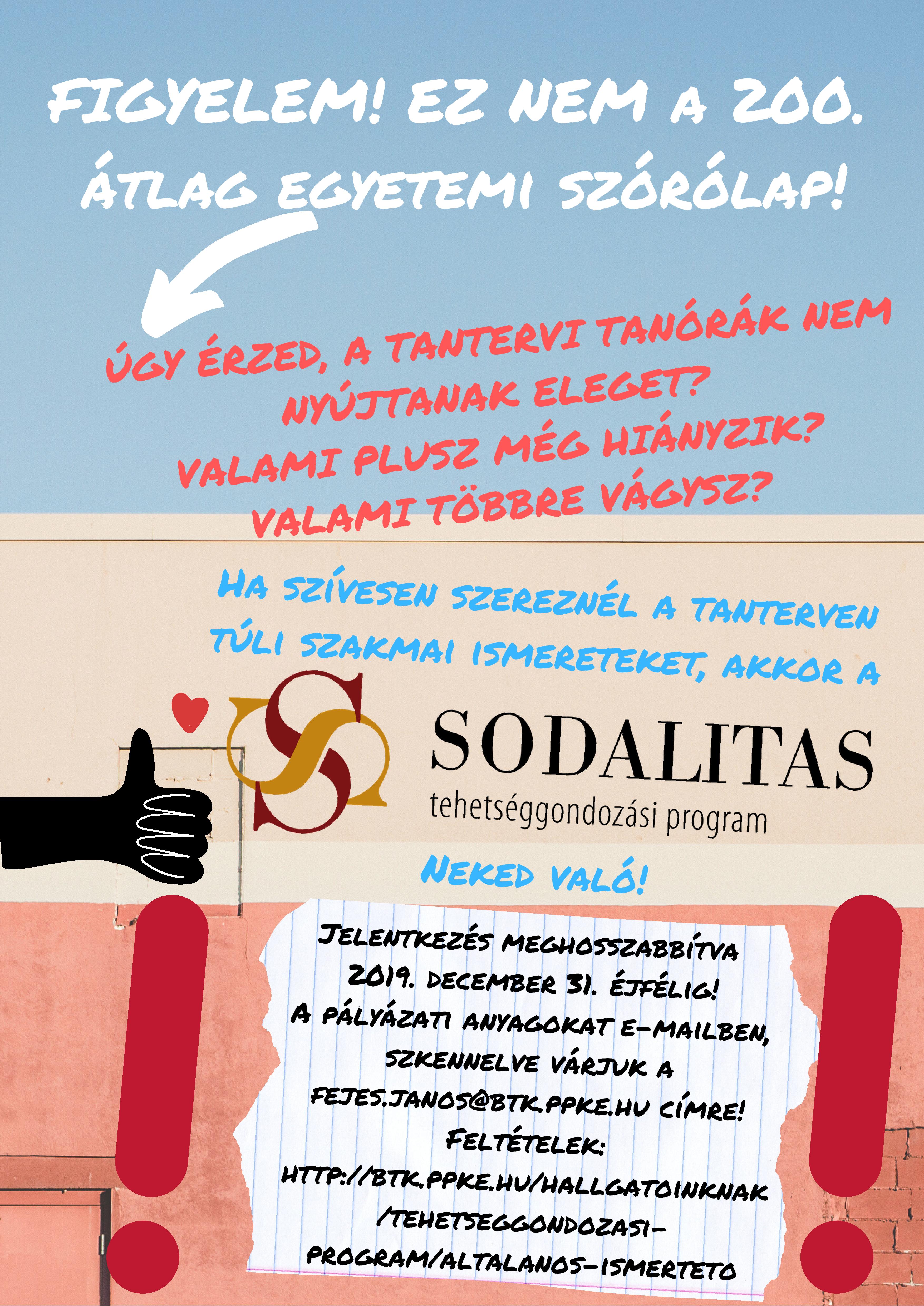Jelentkezés meghosszabbítva a Sodalitas 2020. évi tavaszi félévére