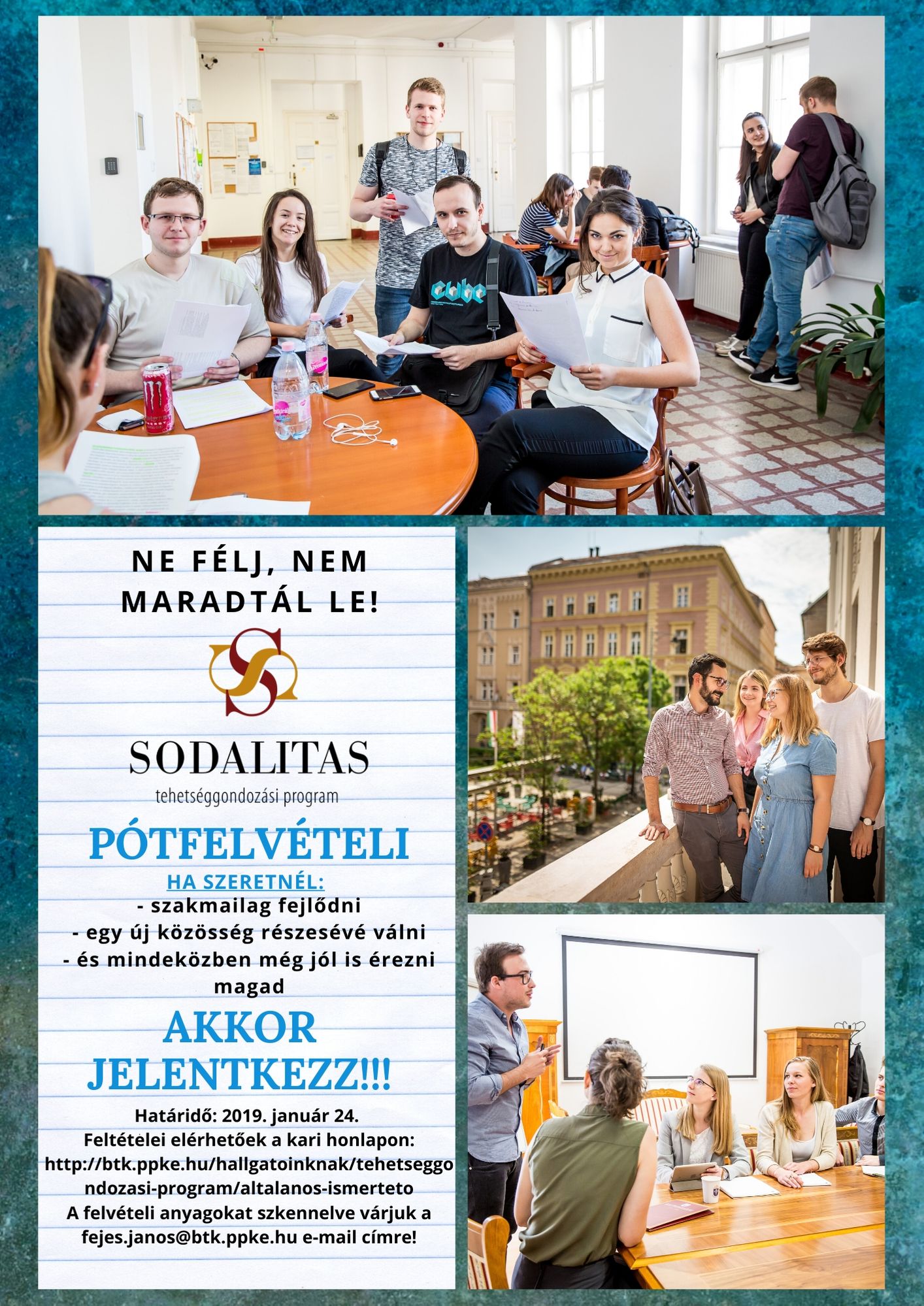 A Sodalitas program pótfelvételit hirdet 2020. január 24-ével bezárólag.