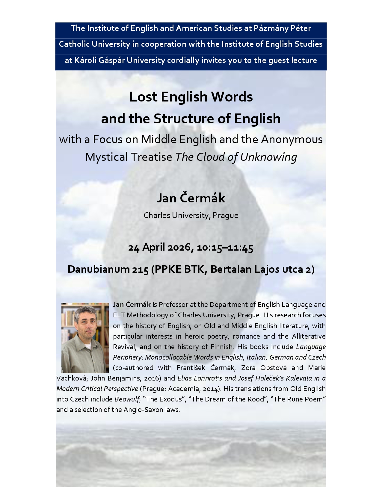 Jan Čermák, a prágai Károly Egyetem professzora vendégelőadást tart az Angol-Amerikai Intézetben