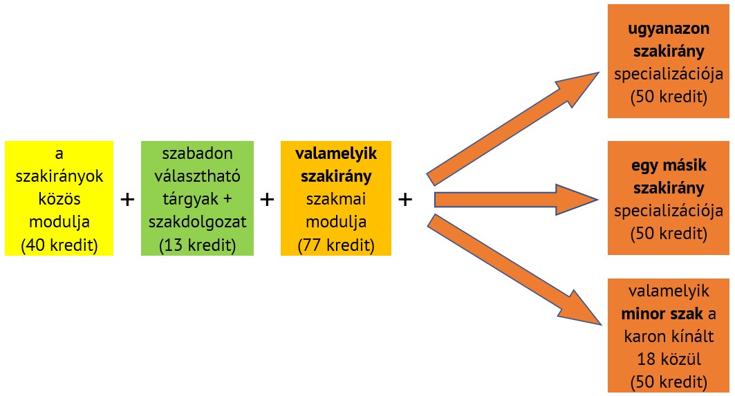 Minegyeik szakirányhoz két saját modul (a szakmai modul és a specializáció) tartozik, és mindegyik szerepel néhány kurzussal az alapozó modulban is.