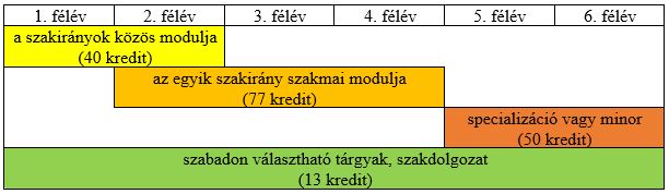 A szak struktúrája a félévek rendjében